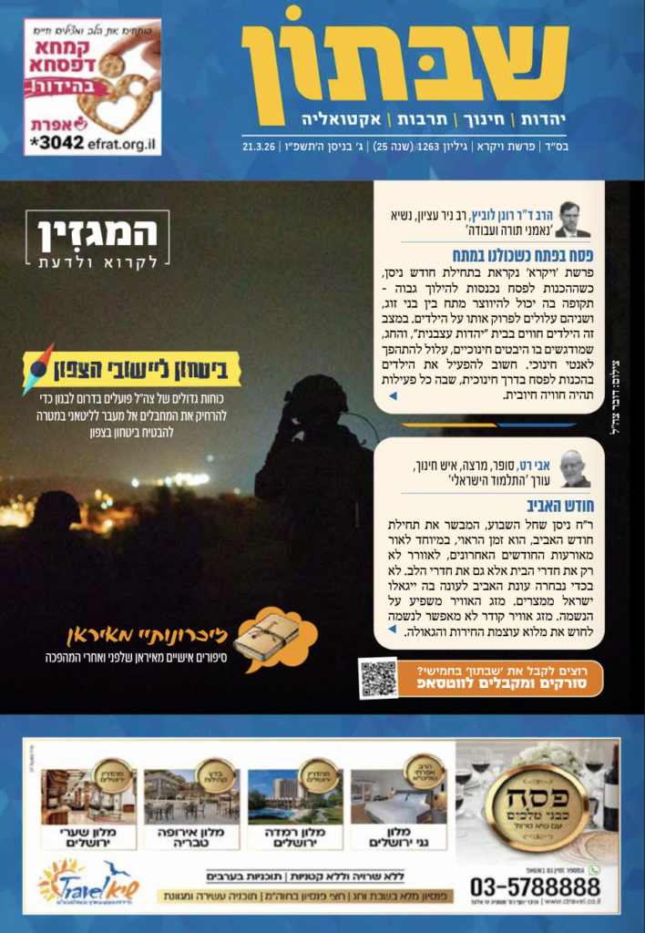 כמו בכל דבר בחיים, אני מאמין שגם מהמלחמה באיראן ניתנת לנו, ההורים ואנשי החינוך, ההזדמנות לעצור רגע ולחשוב: איזה שיעור