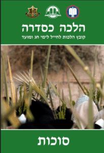 הלכות נוספות לחג הסוכות בצה"ל הפיץ ענף ההלכה של הרבנות הצבאית בקובץ "הלכה כסידרה" לחג הסוכות. בפתחו של הקובץ הדגשנו שחג הסוכות, זמן שמחתנו, מבטא באופן מיוחד את אחדות ישראל. חכמינו קבעו (סוכה, דף כ"ז): "כל ישראל ראויים לישב בסוכה אחת", וגם על מצוות ארבעת המינים אמרו (מנחות, דף כ"ז) שהיא באה לבטא את היותם של ישראל "אגודה אחת". חיילי צה"ל מבטאים ומממשים בשירותם הצבאי את אחדות ישראל, ובכך מבטיחים את שלומה וביטחונה של מדינת ישראל.