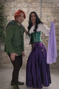 נופת מצידה בחרה בדמות של אזמרלדה – הצוענייה. "זו התחפושת הכי מושקעת שלי שקניתי ממש כל חלק בנפרד. יש לה המון חלקים כי הבגדים שלה הם חצאית וחולצה, ומחוך בצבע מיוחד. הלכתי לקנות את הדברים, דייקתי בצבעים, וקניתי פאות מתאימות. בסוף זה נראה תחפושת מושלמת, כאילו היא באה מוכנה – אבל היא לא".