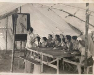 - שלמה לוי במחנה המעצר בקפריסין מלמד תלמידים. צילום: אוסף פרטי